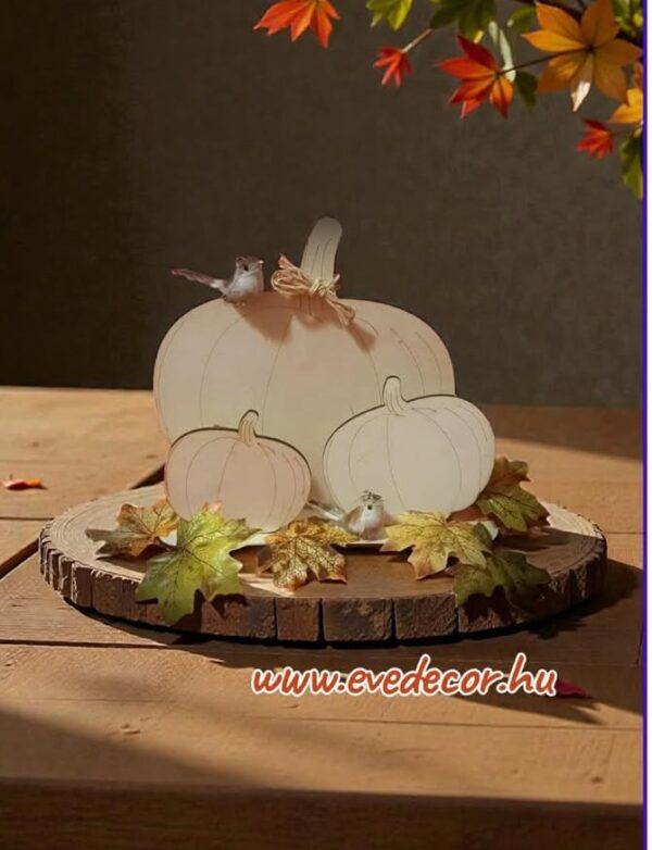 Tök kupac asztali dekoráció .Az ár csak a fa termékre vonatkozik. A fotózáshoz használt levelek és madarak nem a termék része.